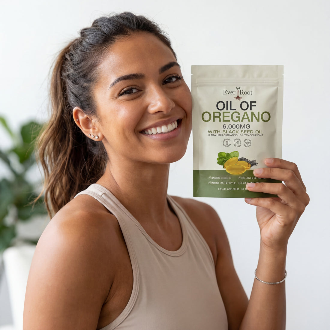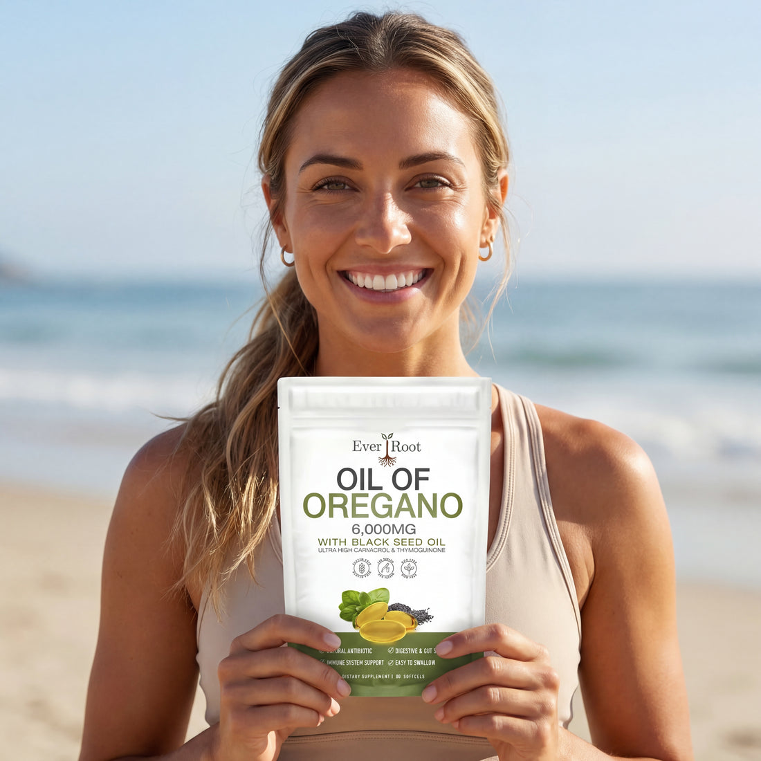 EverRoot Oil of Oregano is a high-potency supplement designed to support gut health, digestion, and immune function. It combines concentrated oregano oil with black seed oil to deliver powerful natural compounds like carvacrol and thymoquinone.